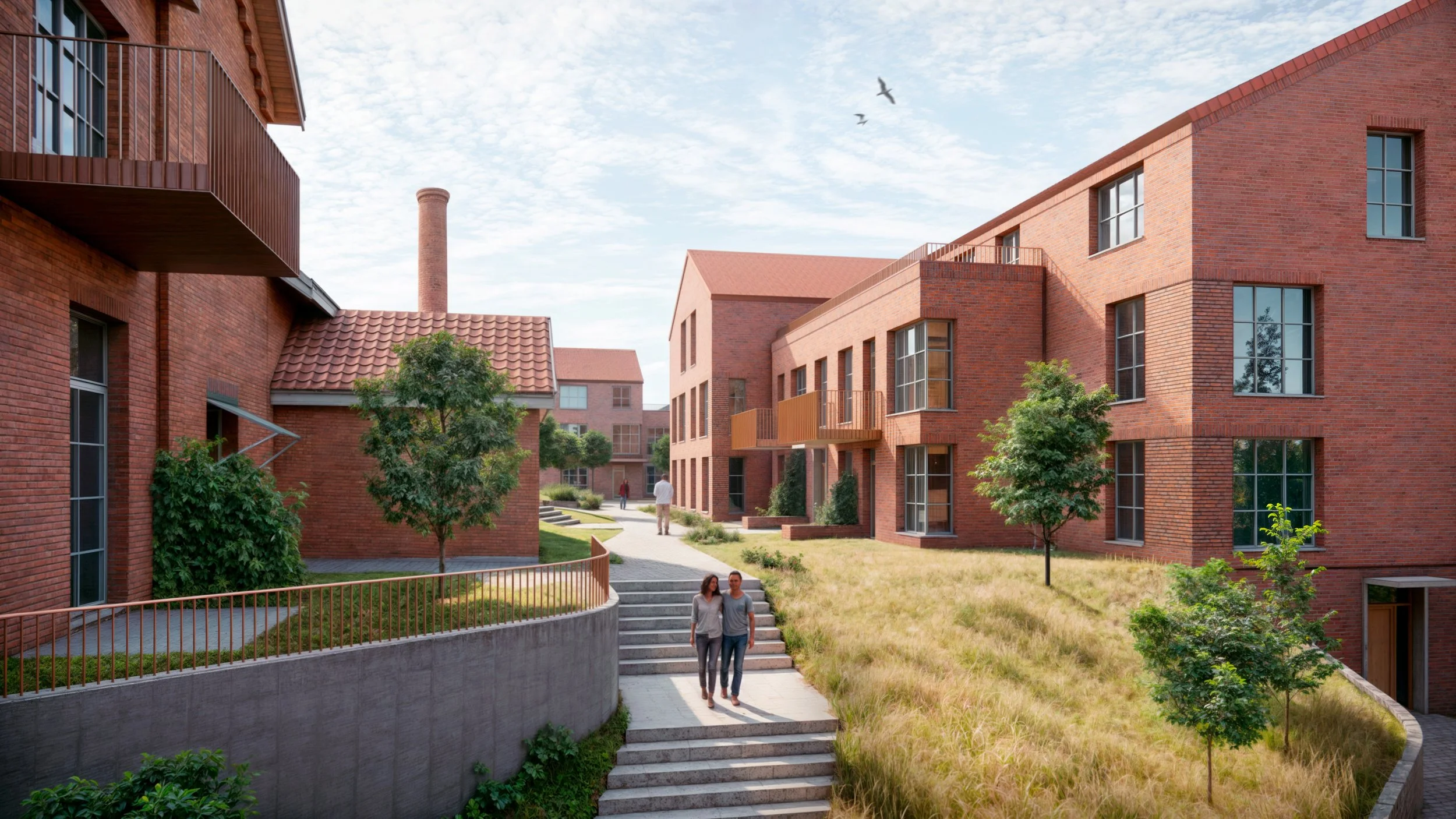 Den nye bebyggelsen består av 95 boliger fordelt på fire leilighetsbygg, organisert slik at den skaper intime gårdsrom og oppholdssoner mellom byggene, som alle knytter an til det sentrale torget. Skala og karakter på den nye bebyggelsen er tilpasset den eksisterende industribebyggelsen. Byggenes høyder er holdt i 3-4 etasjer med saltak på de øverste takene, og utformet med et tegluttrykk som harmonerer med den eldre bebyggelsen og styrker områdets historiske karakter.