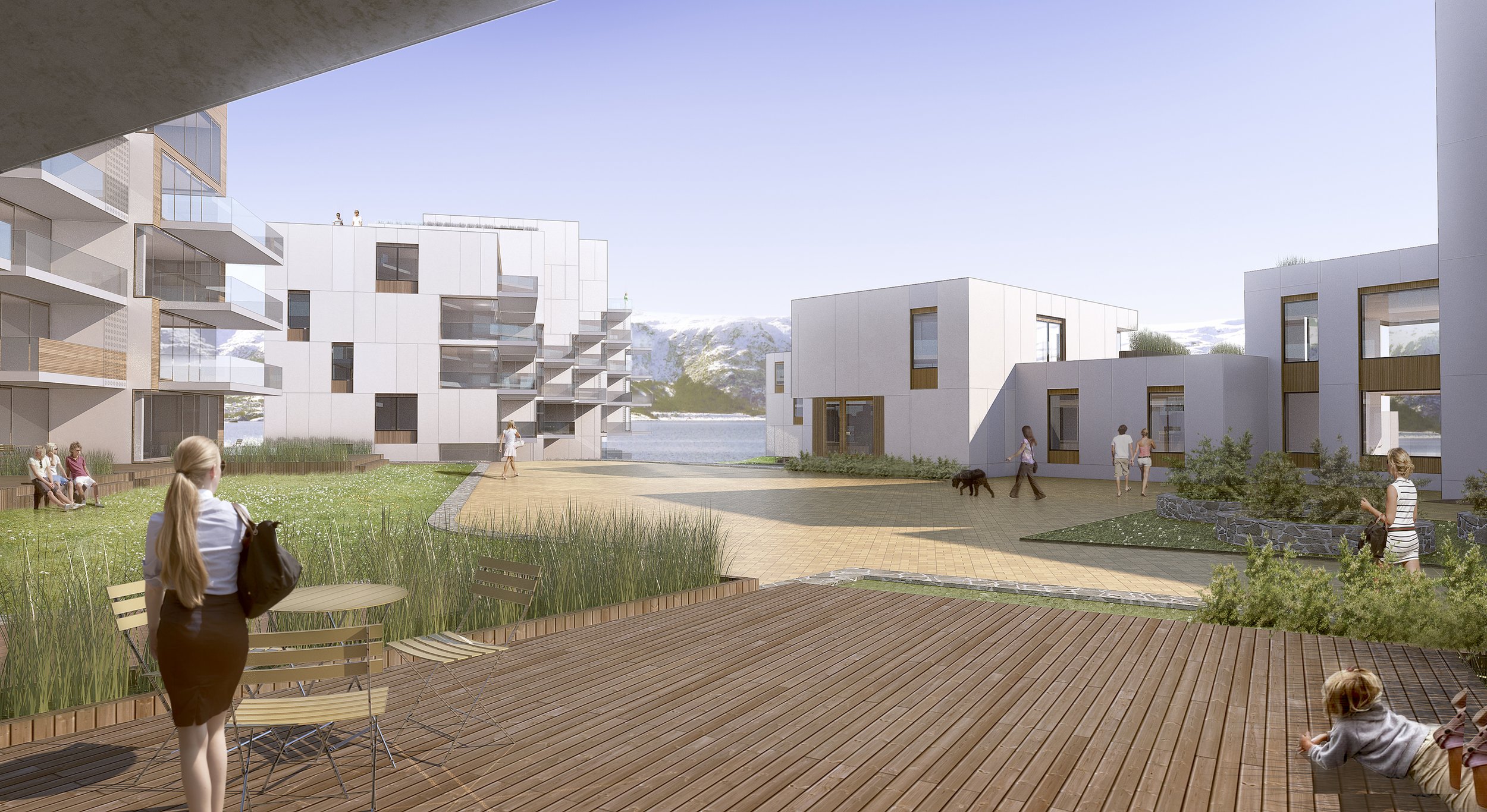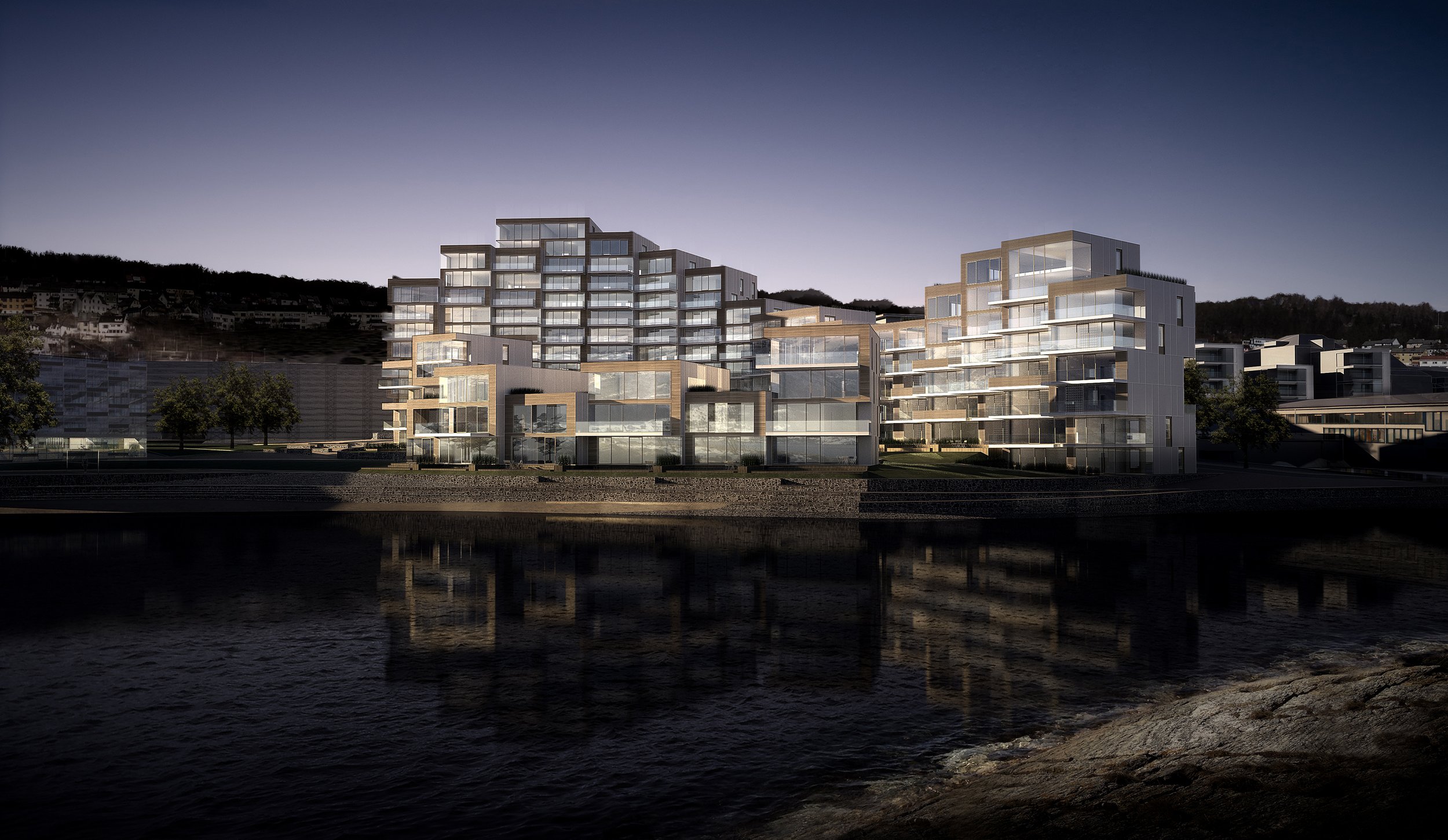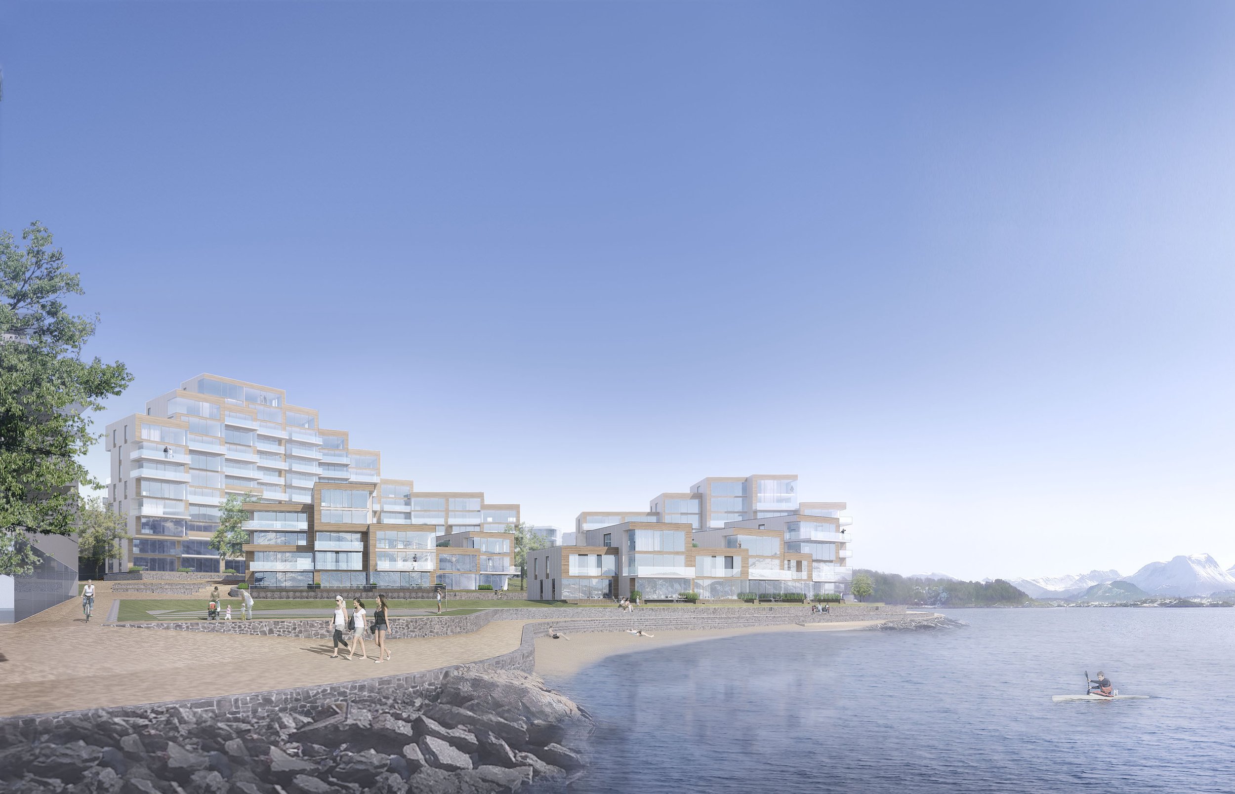 Prosjektet skaper et anlegg med en sterk egenkarakter og gir beboerne utsikt mot den fantastiske naturen i området. I samspill med en historisk bukt, som en gang lå her, og ønsket om utsikt, legges et klart og tydelig grep i form av en «favnende» bebyggelse.